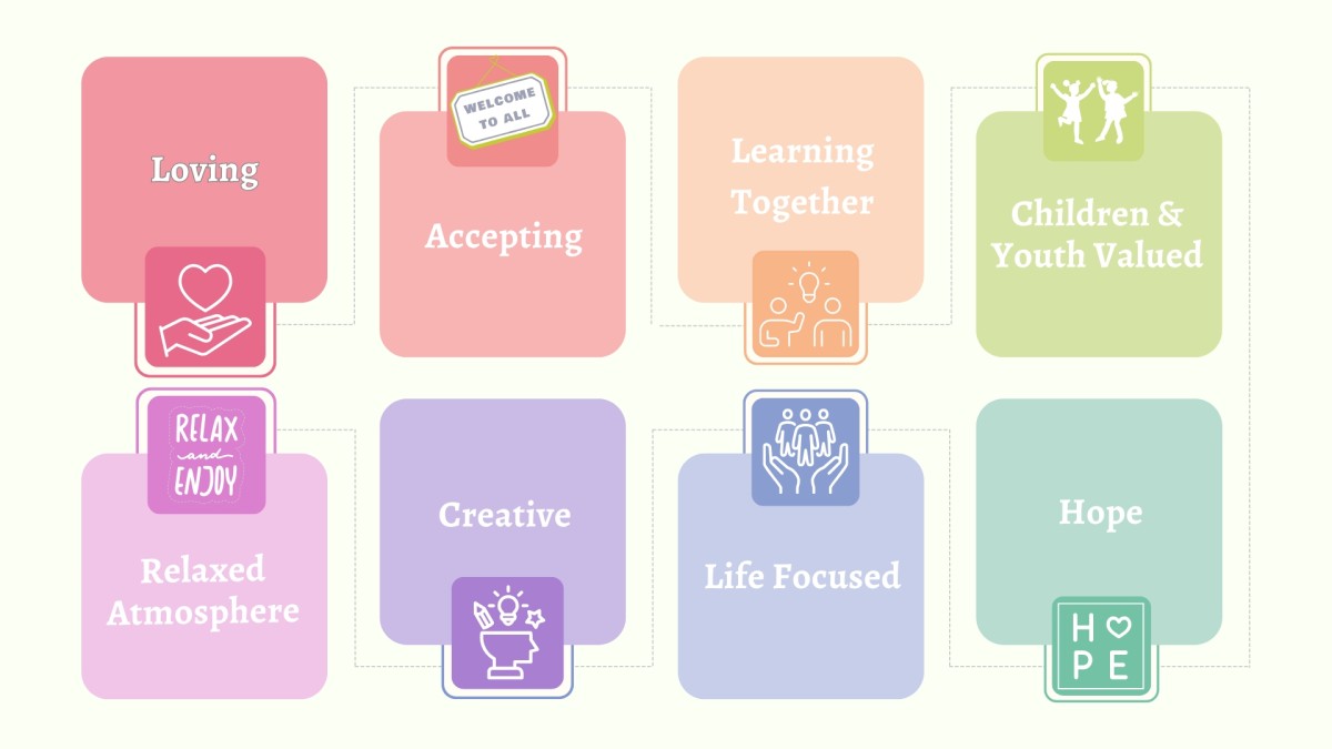 Following a period of consultation and prayer in 2024, we identified these 8 key values as being a good description of many of the things that describe what we are like