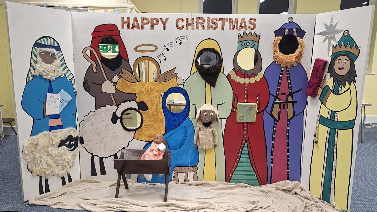 An opportunity to take your own picture or have one taken in our Nativity Photobooth.
